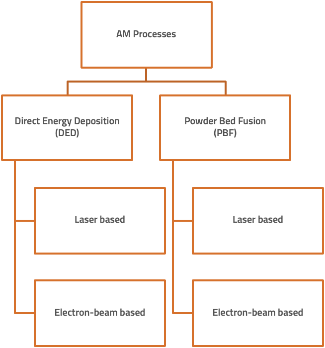 With huge number of commercial machine manufacturers and commercial processes, the nomenclature of AM processes for metals is ambiguous. However, one can classify all the processes under a few categories 1.