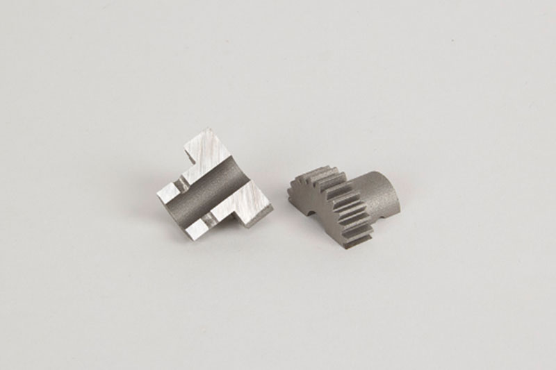Additively manufactured piece(Steel 316L) cut using LAM PLAN Precision Red cutting wheel right though the feature of interest – hole perpendicular to the axis of the gear.