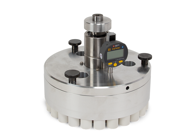 Dieses Gerät hat eine perfekt plane Druckscheibe, die auf eine vertikale Achse wirken kann. Somit kann Druck auf die der zu läppenden Fläche gegenüberliegende Seite ausgeübt werden.
