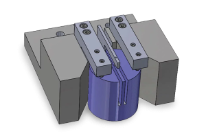 Eine wiederkehrende Problematik bei den Trennphasen bleibt die Haltung der Form sphärischer Teile. Mit diesem Schraubstocktyp auf der CUTLAM®1.1 können Kugeln bis zu einem Durchmesser von Ø 30 bis Ø 60 mm getrennt werden.