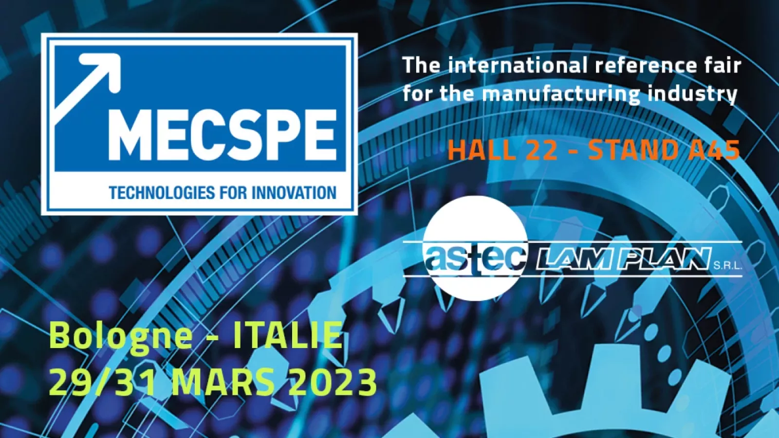 Notre filiale Italienne ASTEC LAM PLAN vous accueillera au salon MECSPE à Bologne.