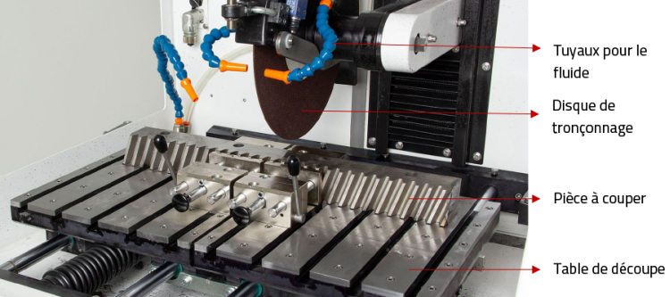 Que contient une machine de tronçonnage métallographique ?