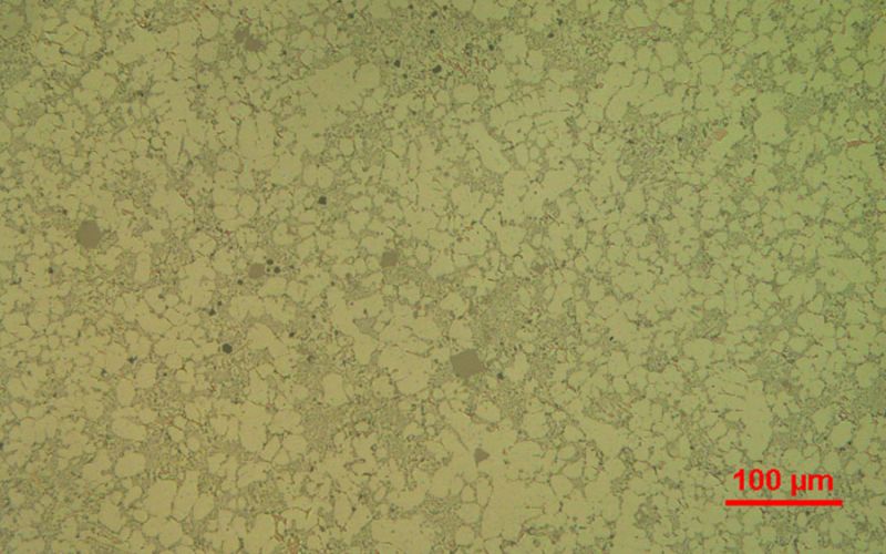 La dernière étape consiste en un polissage mécano-chimique afin d’éliminer complètement les rayures ultrafines pour permettre une analyse de la microstructure à des grossissements plus élevés (>200x) ou à l’aide d’un MEB (Microscope Électronique à Balayage).