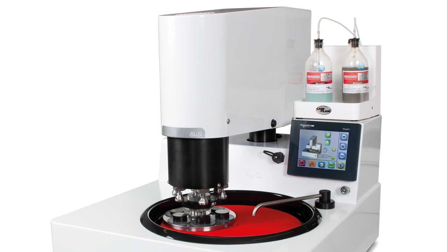 La MASTERLAM®3.0 est la polisseuse métallographique sans concession ; le polissage peut s’effectuer en pression centrale, en pression individuelle et peut être équipé d’un “stop cote” (contrôle enlèvement de matière).