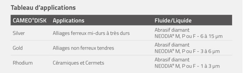 Gamme de dressage et prépolissage CAMEO®DISK Silver, Gold, Rhodium et outils de dressage