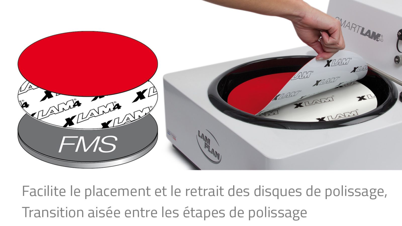 Le XLAM 4 est un produit innovant qui facilite la pose et le retrait des disques de polissage sur les machines de polissage métallographique.