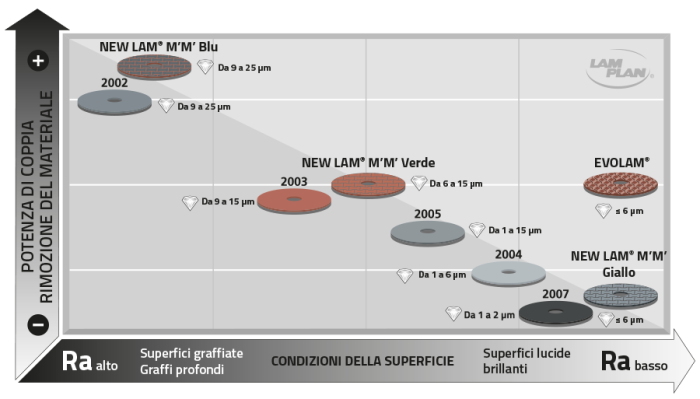 Già 25 anni fa, LAM PLAN era all’avanguardia con il lancio del sistema di polilappatura brevettato NEW LAM® M’M’. Da allora LAM PLAN non ha cessato di fare evolvere il procedimento per rispondere alle esigenze tecniche dei suoi clienti. Il sistema brevettato in Francia, Europa, Stati Uniti, Giappone, Corea, etc. è oggi imprescindibile nei processi di lappatura e lucidatura.