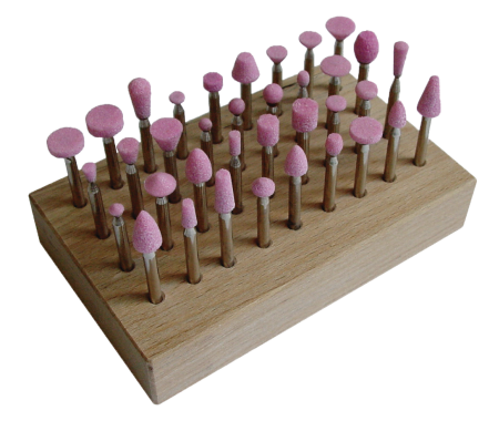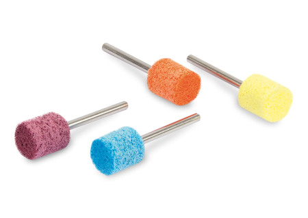 Mole in corindone rosa, rubino-zaffiro, carburo di silicio blu, abrasivi gommati, mole di finitura cilindriche, mole di finitura sferiche e spazzole in ceramica.