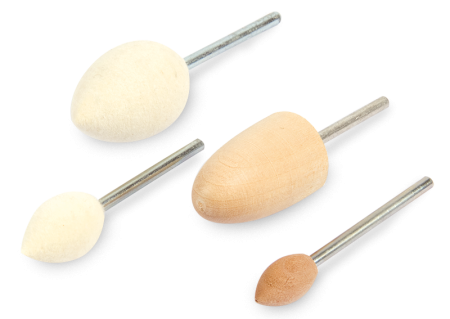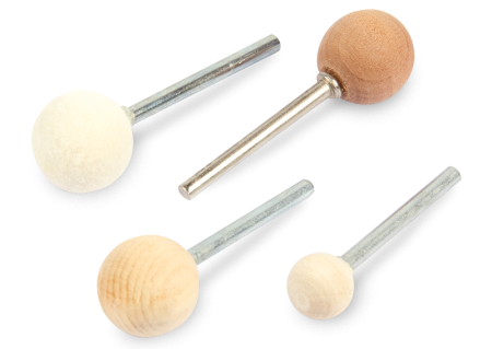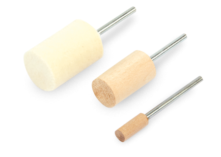 Feltri rotanti per la lucidatura, utensili rotanti in legno cilindrici, a punta e sferici.