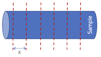 Schematic example of a serial slicing operation on a cylinder to extract slices of thickness x. This cut is easily performed with precision using an X-table.