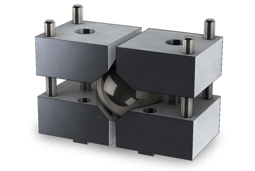 For metallography, sometimes, there is a special need to extract sections from peculiar and complex areas. New fixation systems can be imagined and developed for such applications. For example, it is very difficult and dangerous to clamp spherical pieces with conventional fixation systems. For such applications, unconventional fixation systems can be imagined by our technical department, as shown below.