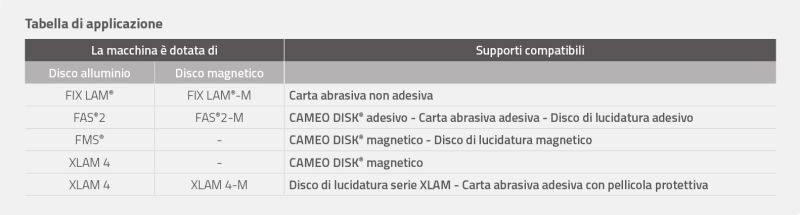 Il sistema FAS® facilita l’incollaggio e il distacco di tutti i supporti autoadesivi (carte abrasive, dischi di pre-lucidatura e lucidatura).